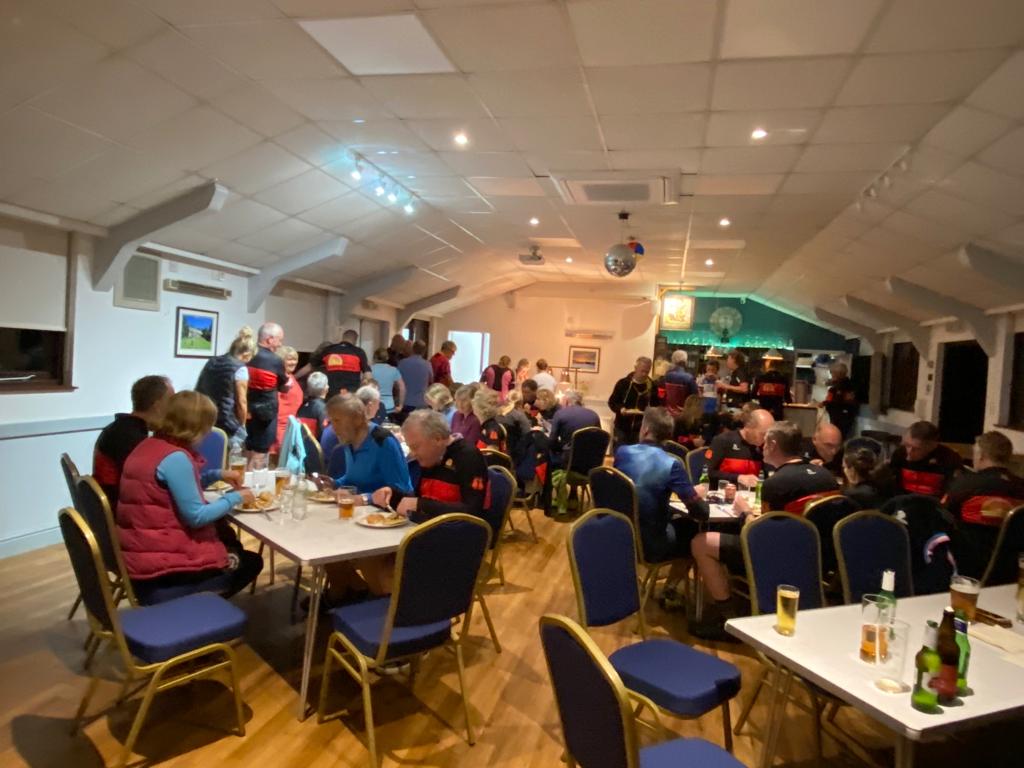 There were the 3 led rides again with slightly shorter distances given that the nights are really drawing in now. The turnout was again superb – everyone seemed to have lights – long sleeves (or arm warmers) were the order of the day for most with quite a chill in the air. The weather was still and clear which made for great riding conditions and the only incident of note appeared to be a Garmin failure and puncture for Sam Nettel in May Naylor and Nick Fenwick’s group – thankfully he made it back to the hall in the end (I think Sam may have joined the back of my long ride group briefly which is why we thought we’d lost someone?).