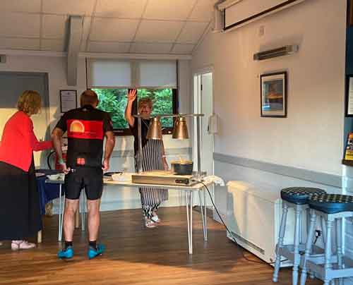 Speaking of the bar – what a great job Phil and Paul did serving the drinks and even collecting the glasses and plates. Caroline and Alistair were beavering away to serve the wonderful curries (lovely recipes Caroline) and the breads etc.