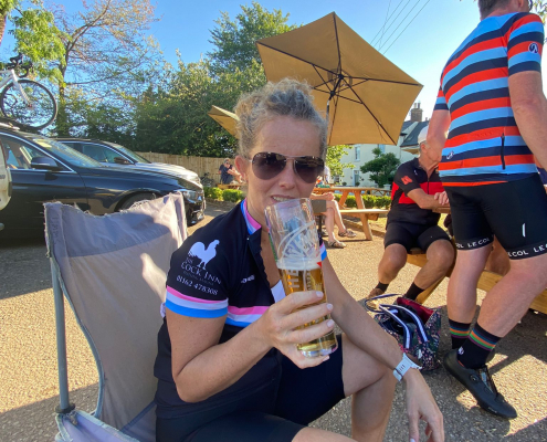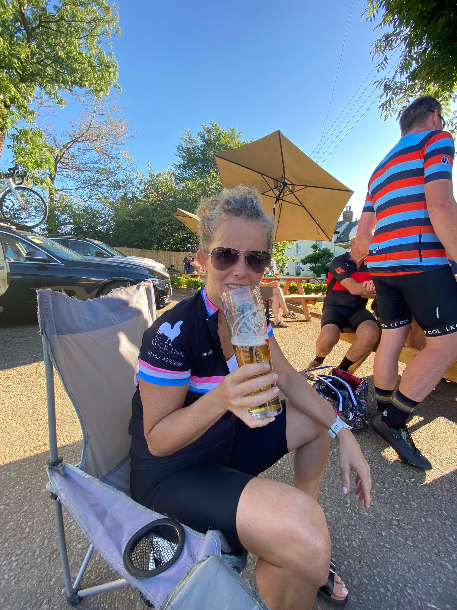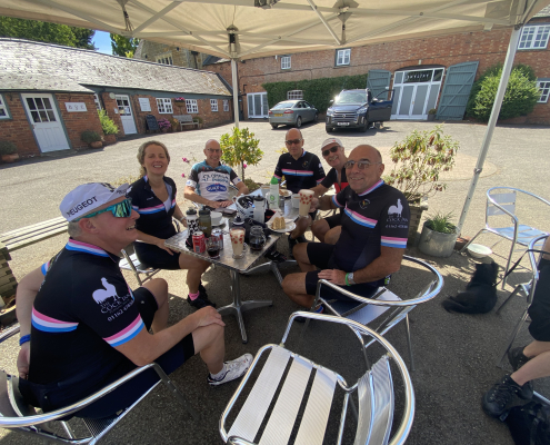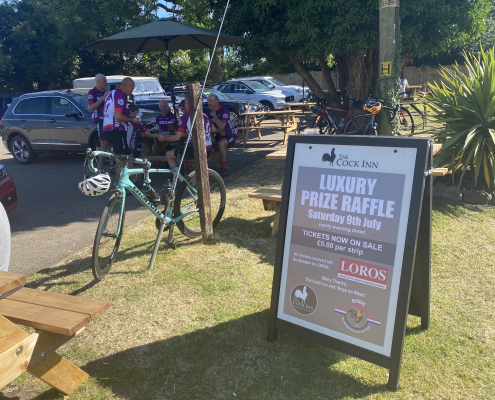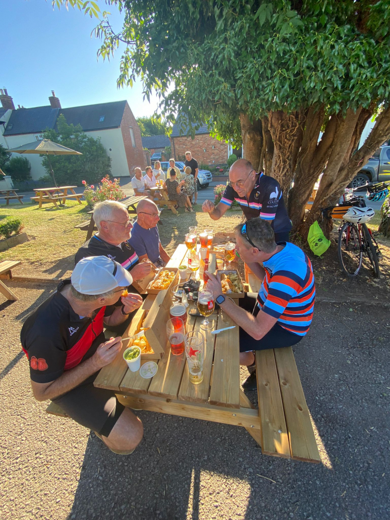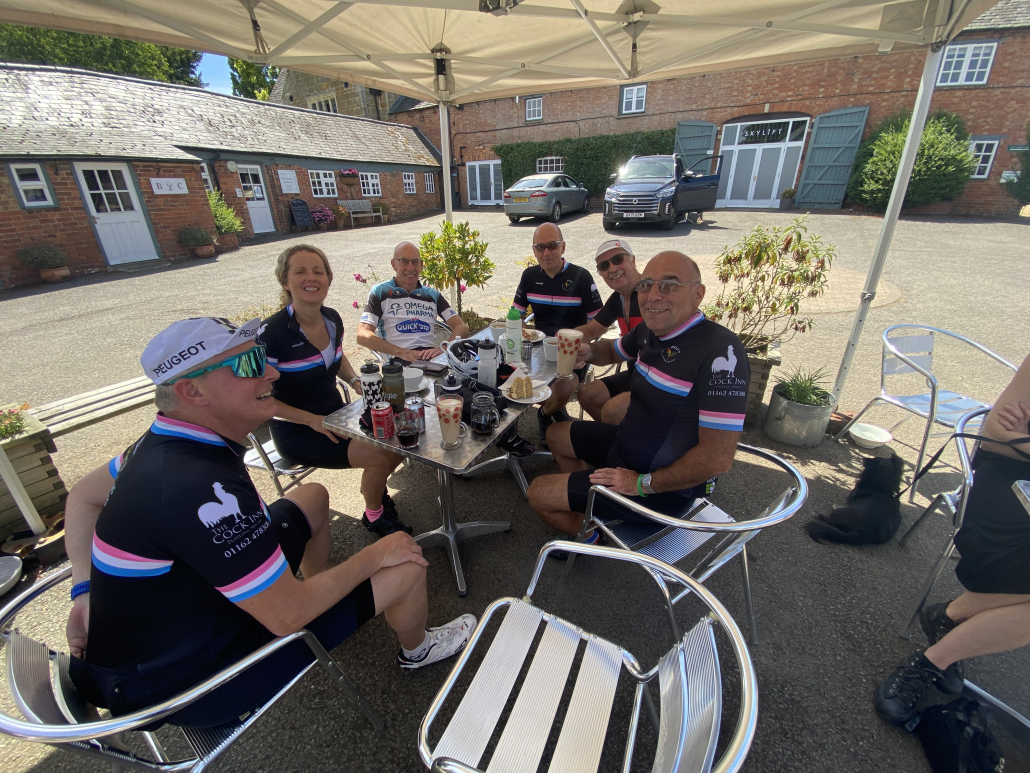This weekend proved eventful with lots going on: The Langton Beer Festival took place from Friday evening to Sunday and was very popular with everybody and we were extremely lucky with this gorgeous weather. In addition, the main cycling event on Saturday was the ‘Johnno’s 100 mile Memorial Ride’ from The Cock Inn at Peatling Magna organised by Rick Newham, Patrice Carter and Phil Rayner. The event raised a fantastic £1,250 for Loros. The heat made the ride very challenging with welcomed stops at Gilmorton & Tur Langton. Some of us took a detour to ride past Mike Vybiral’s house to raise a glass to him. On returning back to the Cock Inn there was entertainment and well-earned refreshments. Well done everyone!!